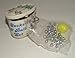Small decorative tin hold the jacks and a ball.